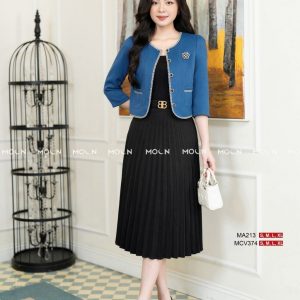 Áo khoác crop công sở thiết kế độc quyền MOON, áo cổ tròn chân váy đầm xếp ly sang chảnh, bánh bèo MA201 MA213
