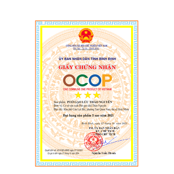 Phở gạo khô Thảo Nguyên là đặc sản Bình Định được làm bằng cách chiết xuất tinh chất các loại rau củ tạo nên màu sắc và hương vị rất đặc trưng khó có thể nhầm lẫn. Đạt chứng nhận ATVSTP.